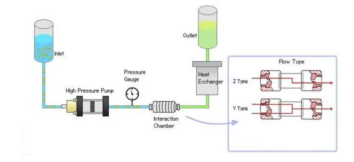 微射流均质机基于高压射流破碎与剪切原理工作,核心部件为交互容腔(如Z型、Y型或金刚石微孔结构)。